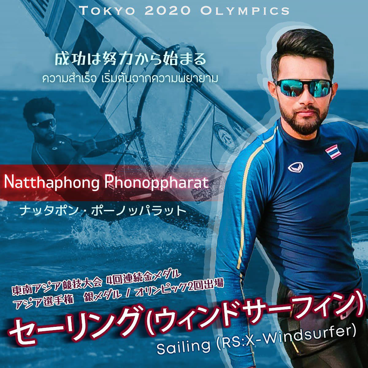 男子ウィンドサーフィン(セーリング)RS:X級 タイ代表のナッタポン・ポーノッパラット、愛称オート選手は、 パタヤ生まれの33歳。シーゲームではこれまで4つの金メダルを獲得しており、2014アジア競技大会では銀メダルを獲得しています。オリンピックに出場するのは、2016年のリオデジャネイロに続いて2度目になります。