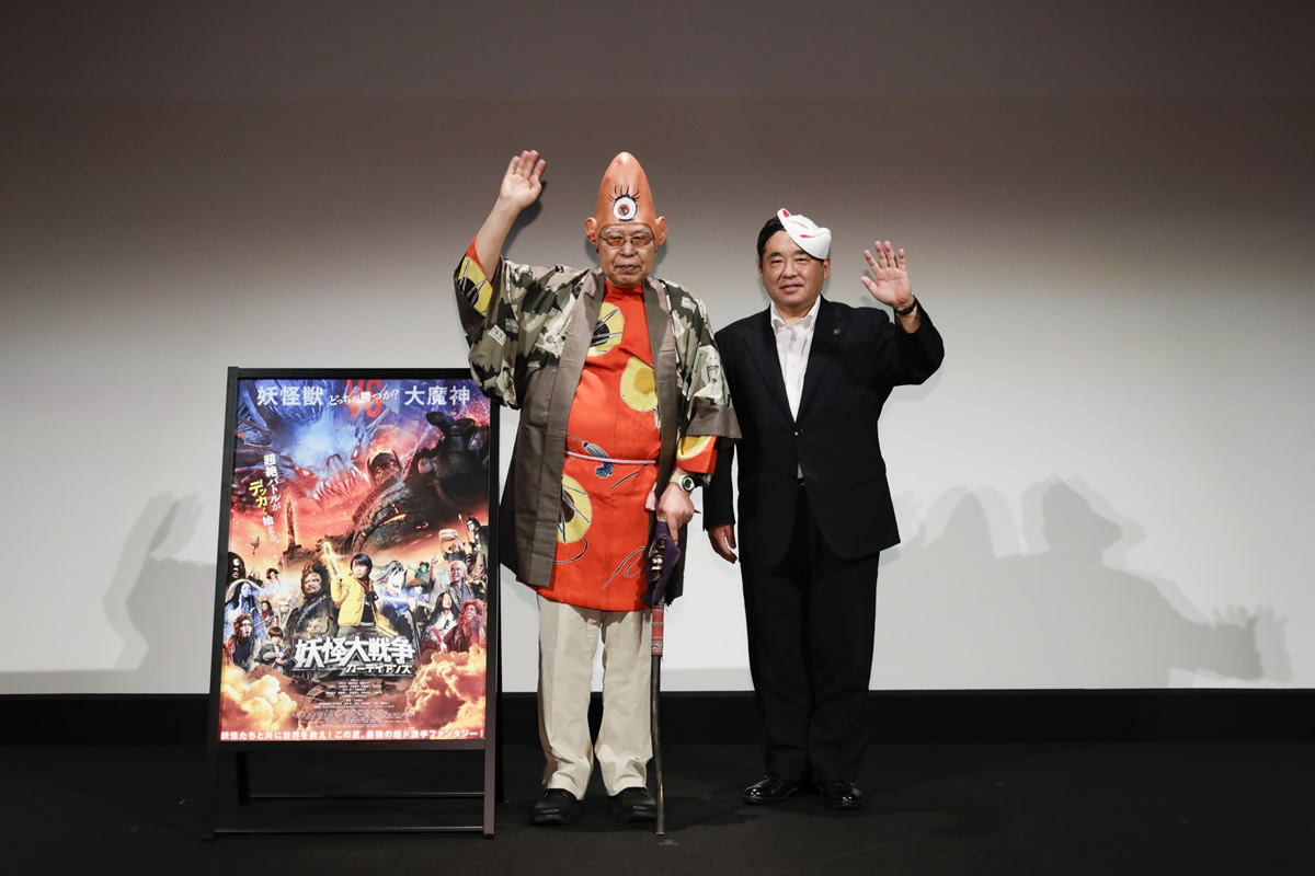 続いて荒俣も、映画を作るにあたって一番考えたのは所沢のことだと話し、かつて武蔵野と呼ばれた所沢には、2万年の昔から妖怪がいたと所沢と妖怪の関連をアピール。さらに昨年大ブームになったアマビエに言及し、「令和は妖怪の時代です。(アマビエは)妖怪好きな人でも知らないですよ。そういうものが復活して、妖怪のご利益が重要視されるようなった。そういう時代の映画です。妖怪の文明を感じてほしい。」と話した。