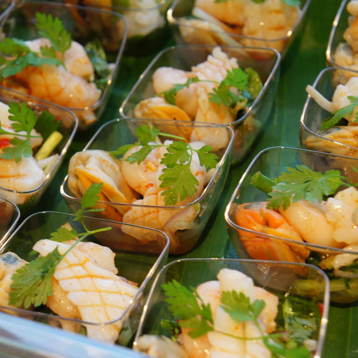 「アニバーサリーブッフェナイト」は、通常のランチブッフェをパワーアップさせた形のディナーブッフェ(お1人様:11,000円税込)。20種類の野菜から好きなものを選んで調理する「ソムタム タイ」(グリーンパパイヤのサラダ)や、目の前で焼き上げる「和牛ステーキ ガパオソース」など、伝統的なタイ料理を「マンゴツリー東京」ならではの洗練されたスタイルで提供するとのこと。