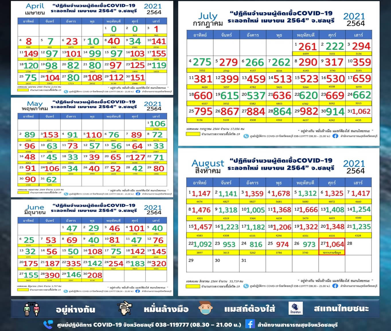 タイ東部チョンブリ県は2021年8月27日(金)朝6時半、新型コロナウイルスの最新の感染状況を発表しました。