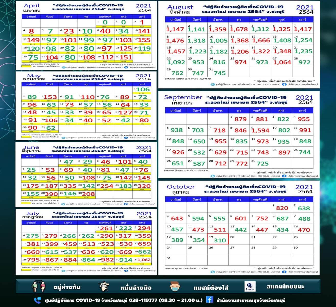タイ東部チョンブリ県は2021年10月19日(火)朝6時半、新型コロナウイルスの最新の感染状況を発表しました。