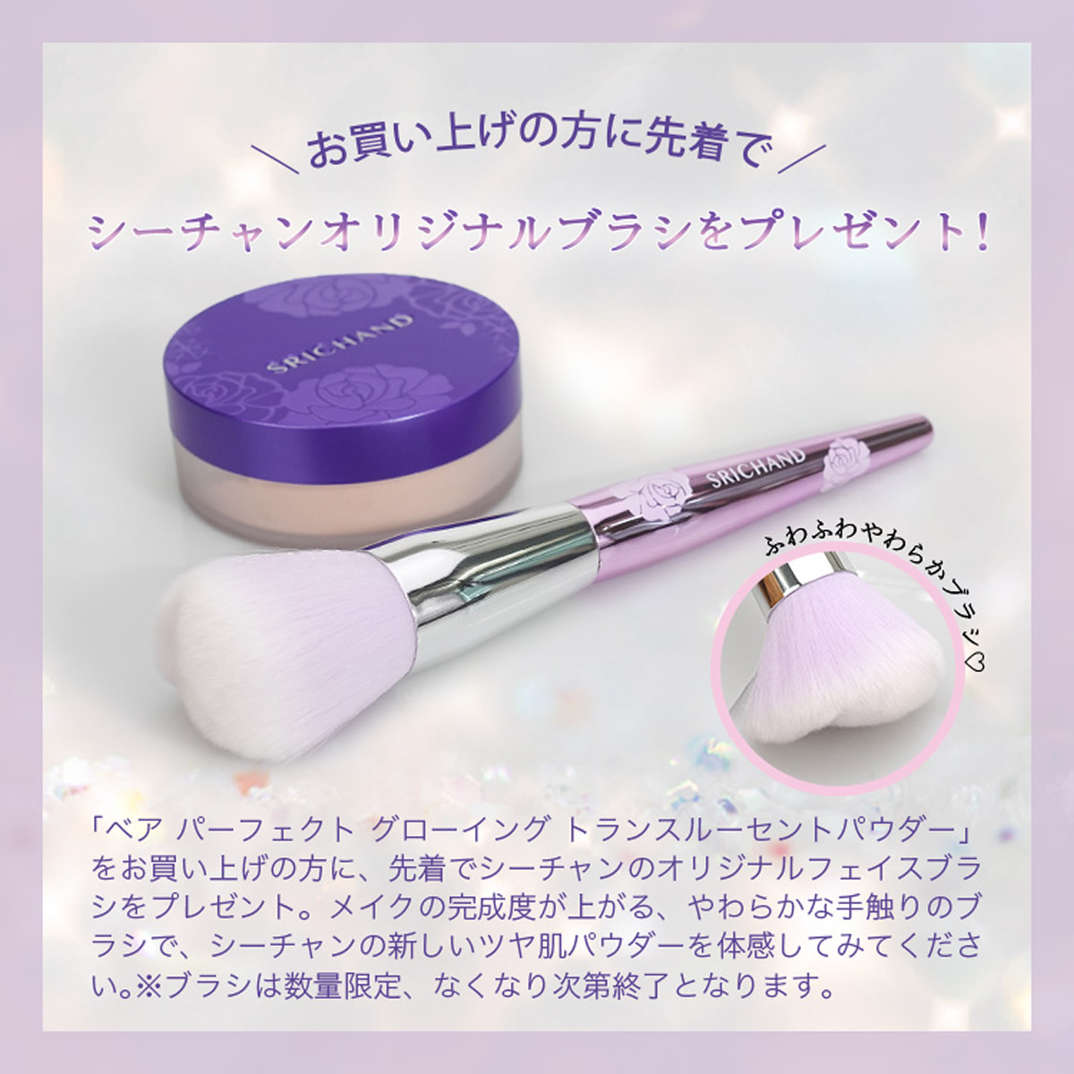 「Bare(ベア) パーフェクト グローイング トランスルーセントパウダー」をお買い上げの方に、先着でシーチャンのオリジナルフェイスブラシをプレゼント。