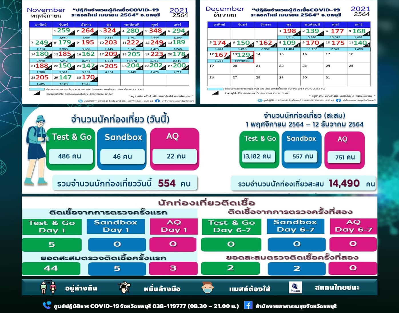 チョンブリ県167人陽性/ムアン13人/シラチャ53人/パタヤ64人[2021年12月12日]