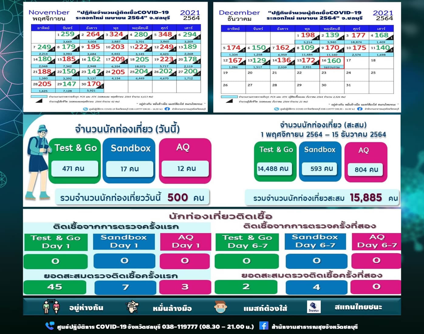チョンブリ県170人陽性/ムアン29人/シラチャ51人/パタヤ65人[2021年12月9日]