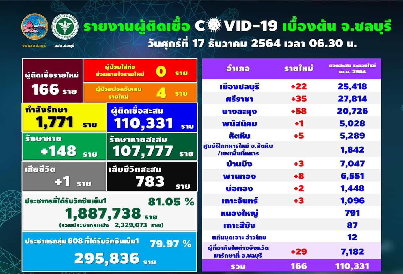チョンブリ県170人陽性/ムアン29人/シラチャ51人/パタヤ65人[2021年12月9日]