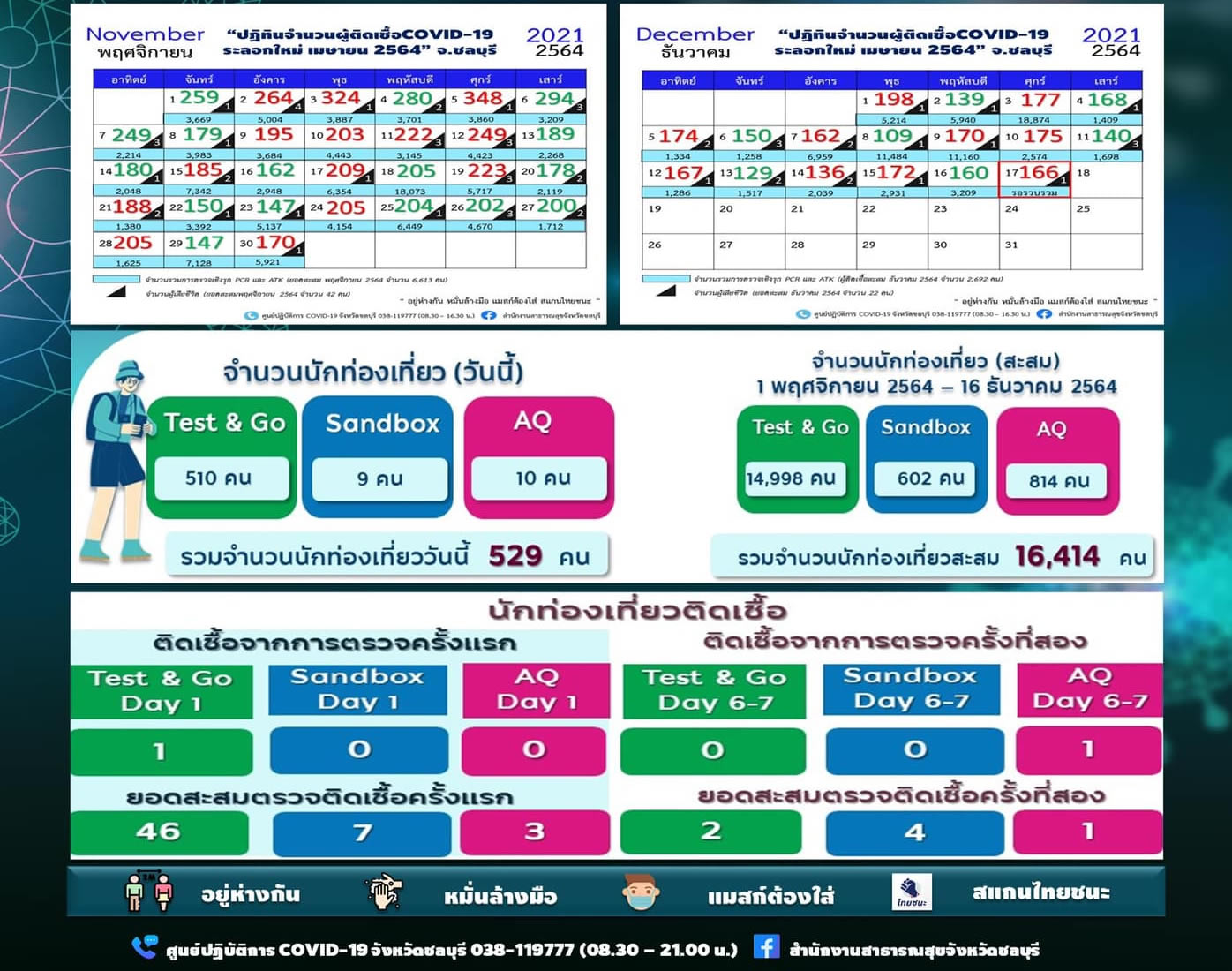 チョンブリ県160人陽性/ムアン20人/シラチャ34人/パタヤ46人[2021年12月16日]