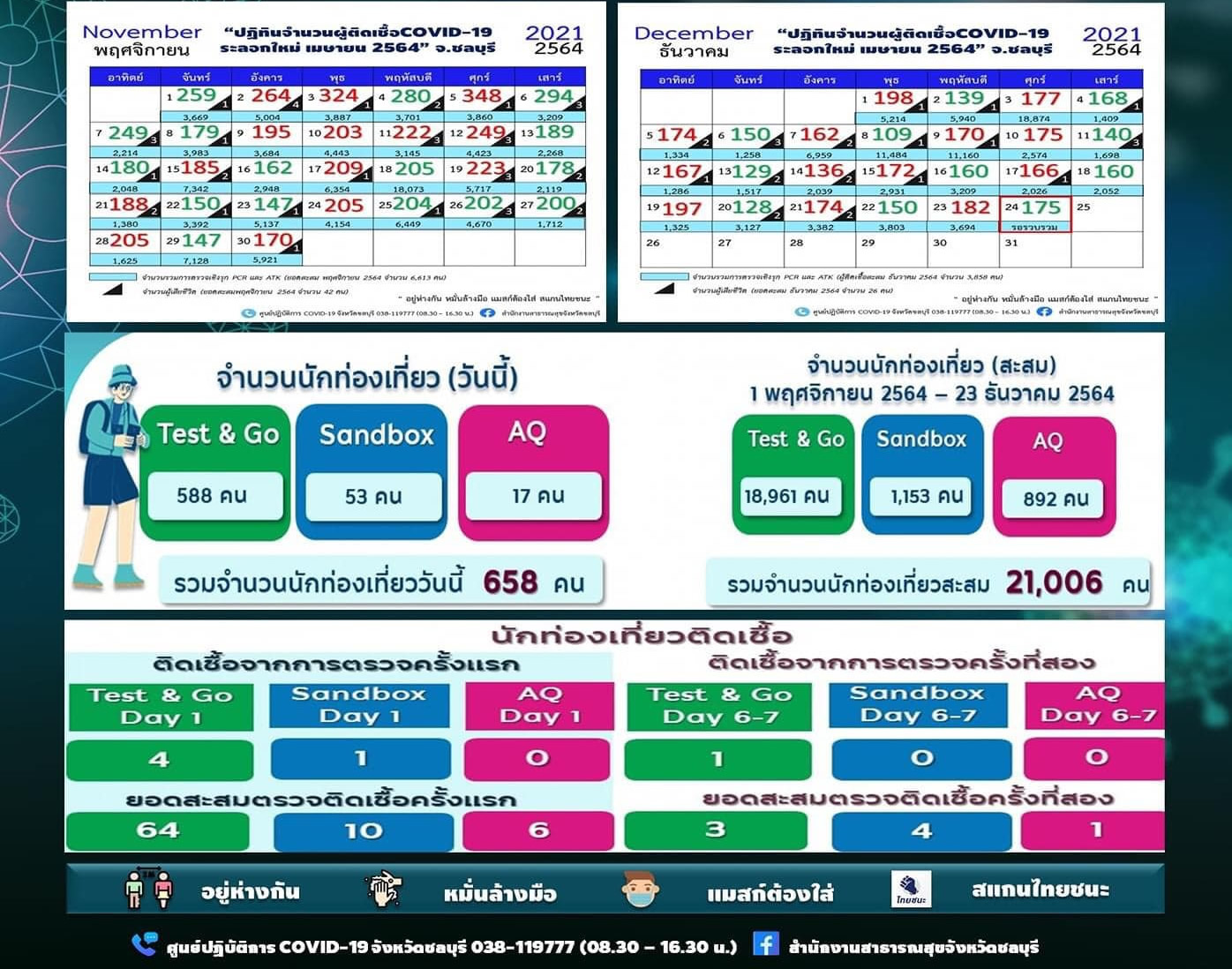 タイ東部チョンブリ県は2021年12月24日(金)朝6時半、新型コロナウイルスの最新の感染状況を発表しました。
