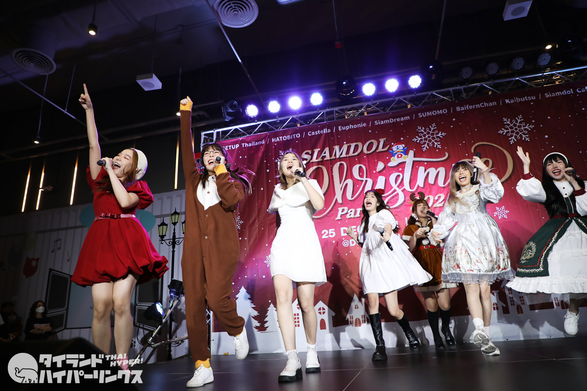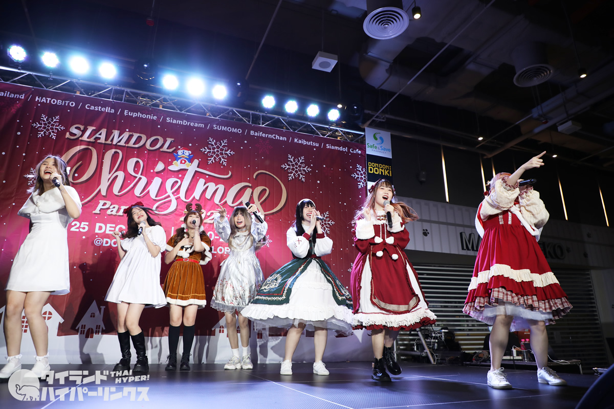 バンコクのドンキモール・トンロー4階で2021年12月25日(土)、「サイアムドル クリスマスパーティー2021(Siamdol Christmas Party 2021)」が開催されました。女子アイドルたちからの、無料コンサートのプレゼントです。主催はアイドルプロダクションのサイアムドル(Siamdol)。