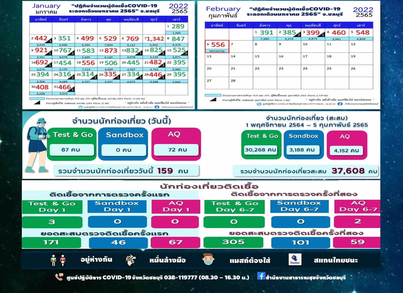 チョンブリ県548人陽性/ムアン152人/シラチャ103人/パタヤ100人[2022年2月5日]