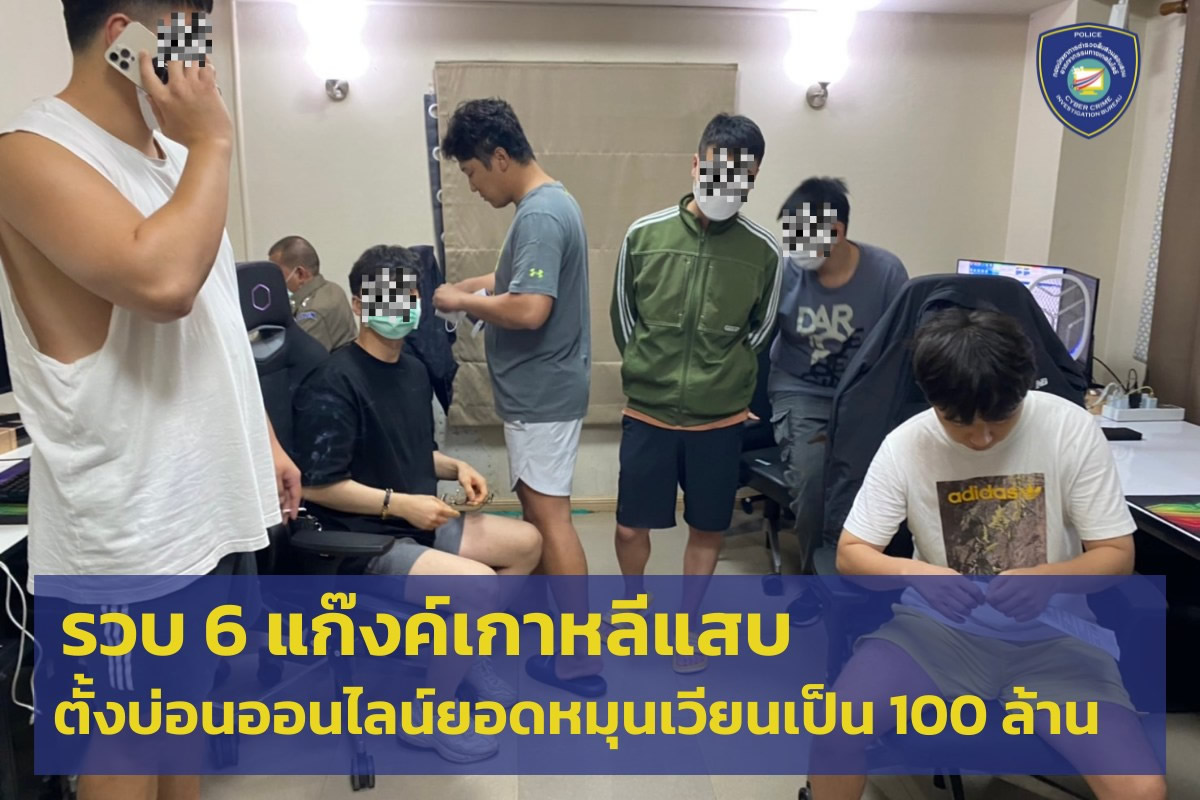 タイ警察サイバー犯罪捜査局(CCIB:Cyber Crime. Investigation Bureau、กองบัญชาการตำรวจสืบสวนสอบสวนอาชญากรรมทางเทคโนโลยี)は2022年2月22日午後4時、サムットプラカーン県バーンプリー区バーンプリーヤイの住宅を捜索し、オンライン賭博サイトの運営などをしていた5人の韓国人(30歳、30歳、27歳、26歳、27歳)を容疑者として逮捕しました。(または逮捕は6人の韓国人)