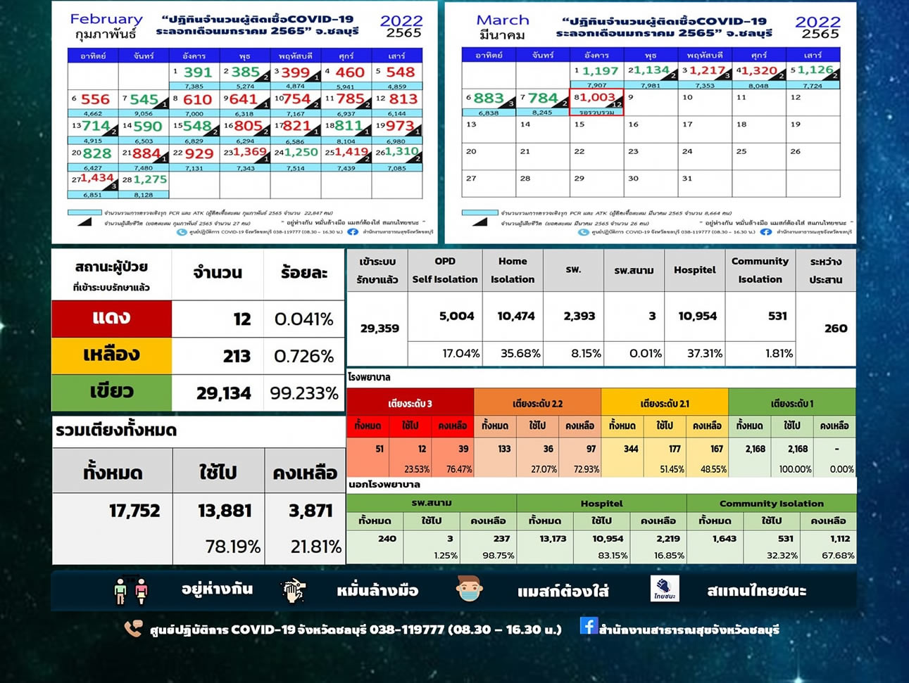 タイ東部チョンブリ県は2022年3月8日(火)朝6時半、新型コロナウイルスの最新の感染状況を発表しました。