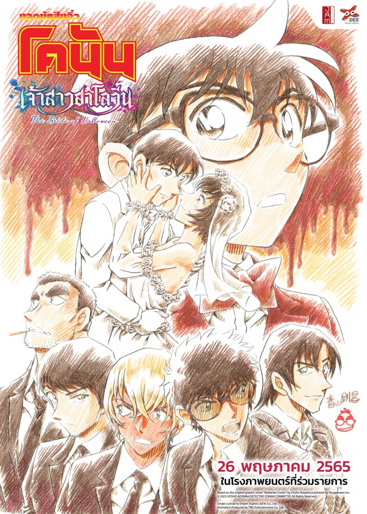 劇場版『名探偵コナン ハロウィンの花嫁』が、2022年5月26日よりタイの映画館で公開になります。タイ語タイトルは「โคนัน เดอะมูฟวี่ 25 : เจ้าสาวฮาโลวีน(コナン ザ ムービー25:チャオサオハロウィーン)」。