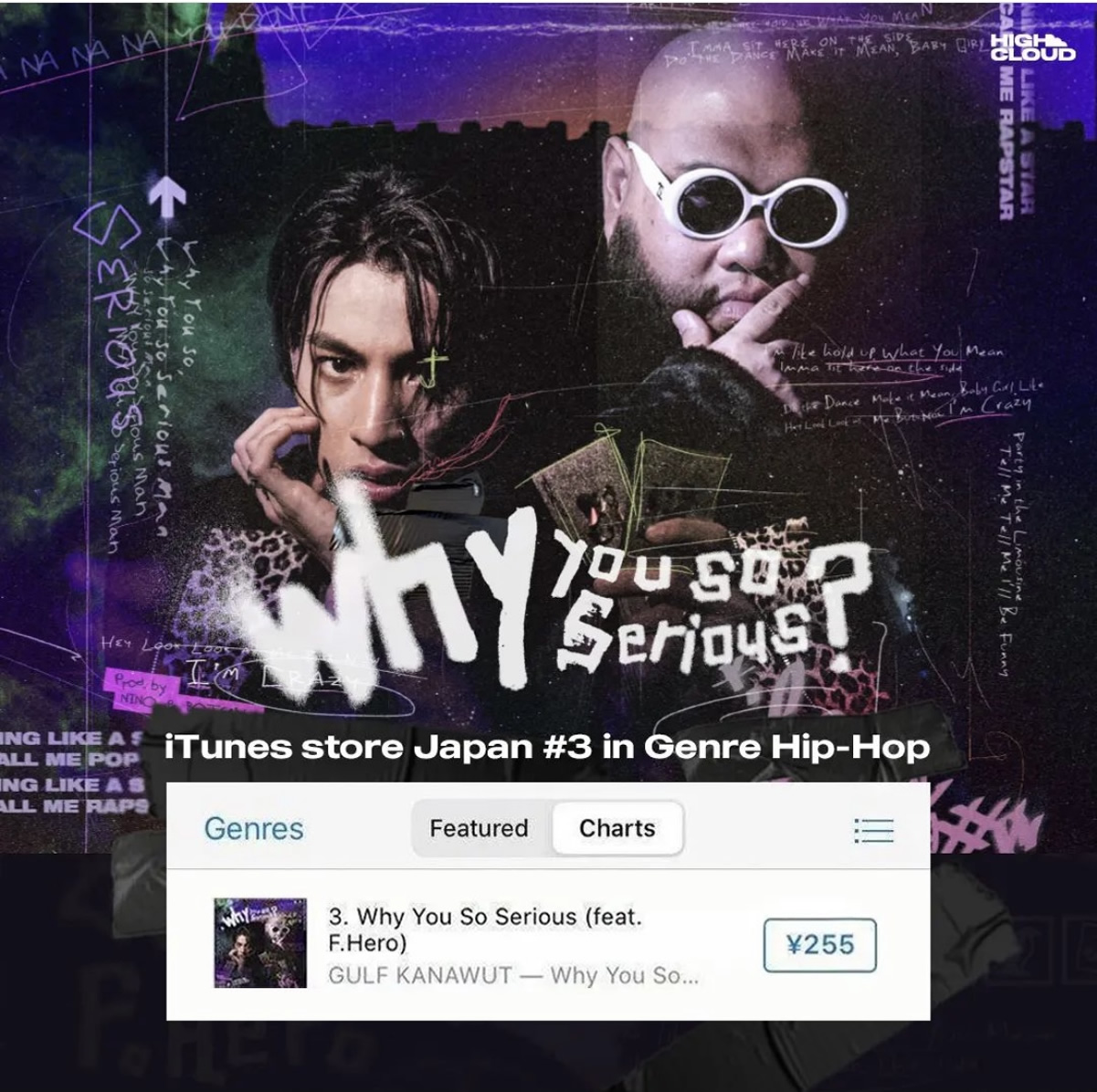 CHET Asiaが配信する、GULF KANAWUTのファーストシングル『WHY YOU SO SERIOUS』が、iTunes Store(日本)の「ヒップホップ/ラップ トップソング」ランキングで3位を記録しました。(2022年2月21日)
