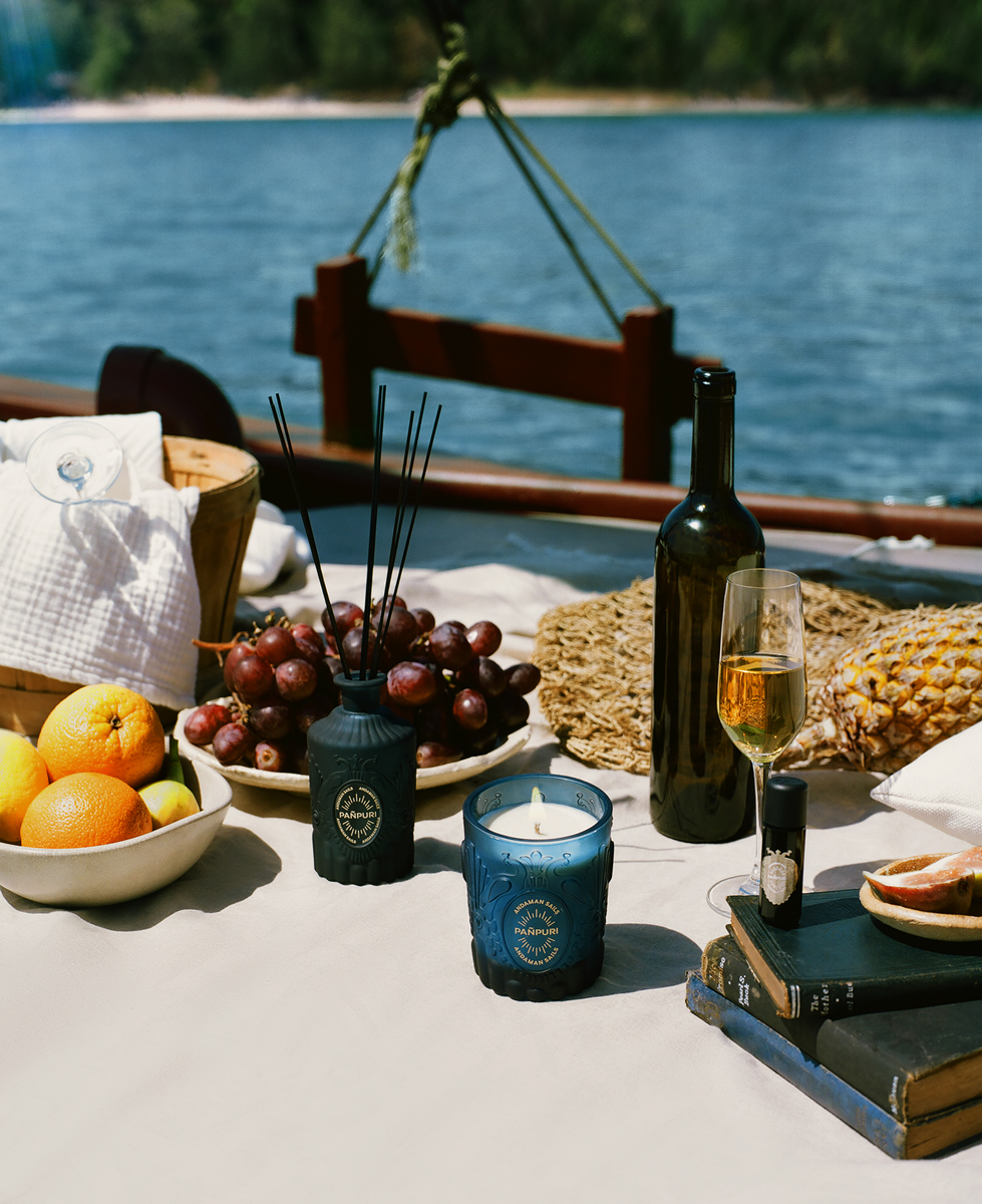キャンドル、ディフューザー、エッセンシャルオイル、ルームスプレー、パフュームサシェの5製品を含むこのコレクションは、ライフスタイルに合わせて、それぞれのシーンでアンダマン海を満喫することに着想を得ています。