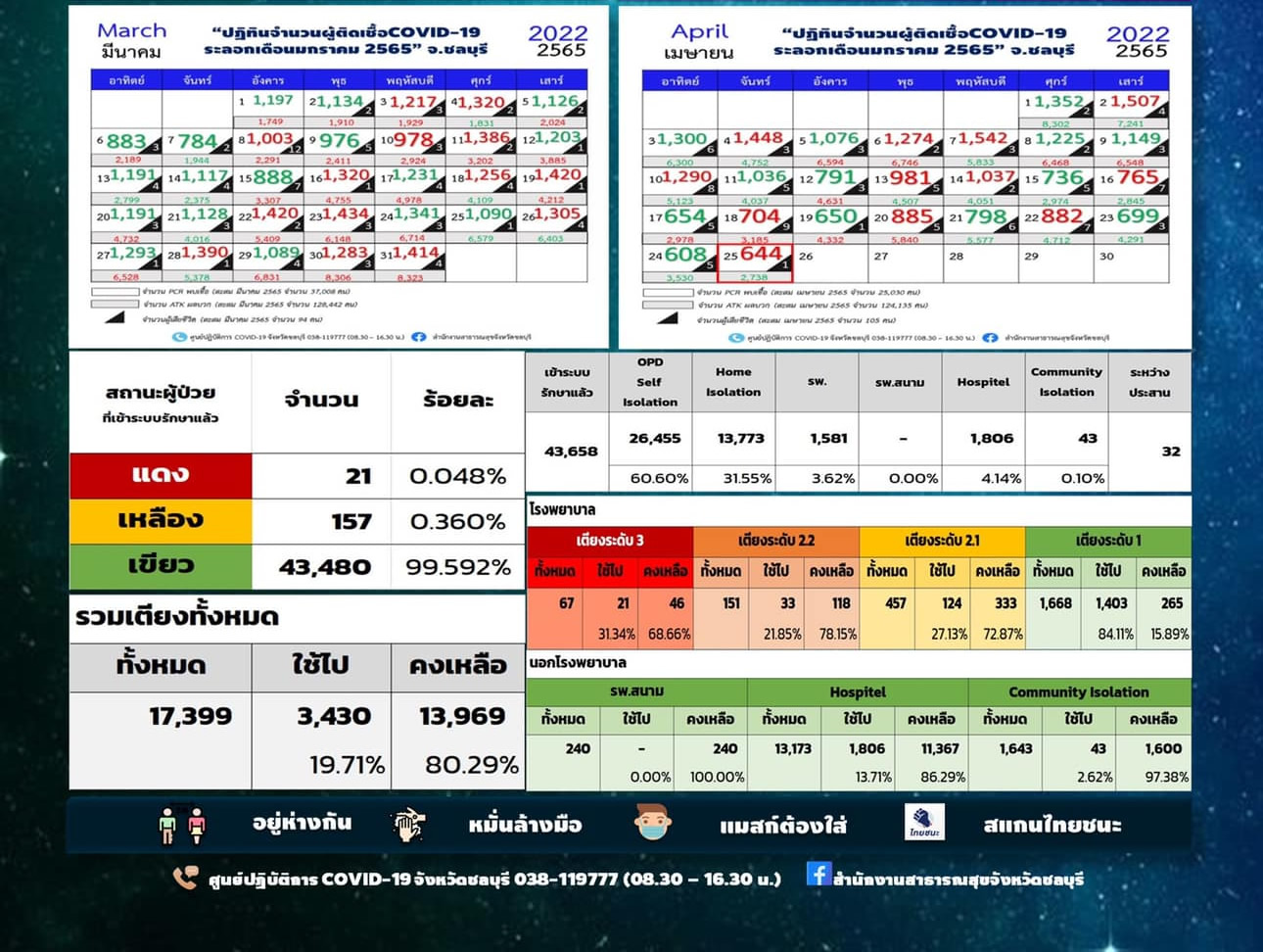 タイ東部チョンブリ県は2022年4月25日(月)早朝、新型コロナウイルスの最新の感染状況を発表しました。