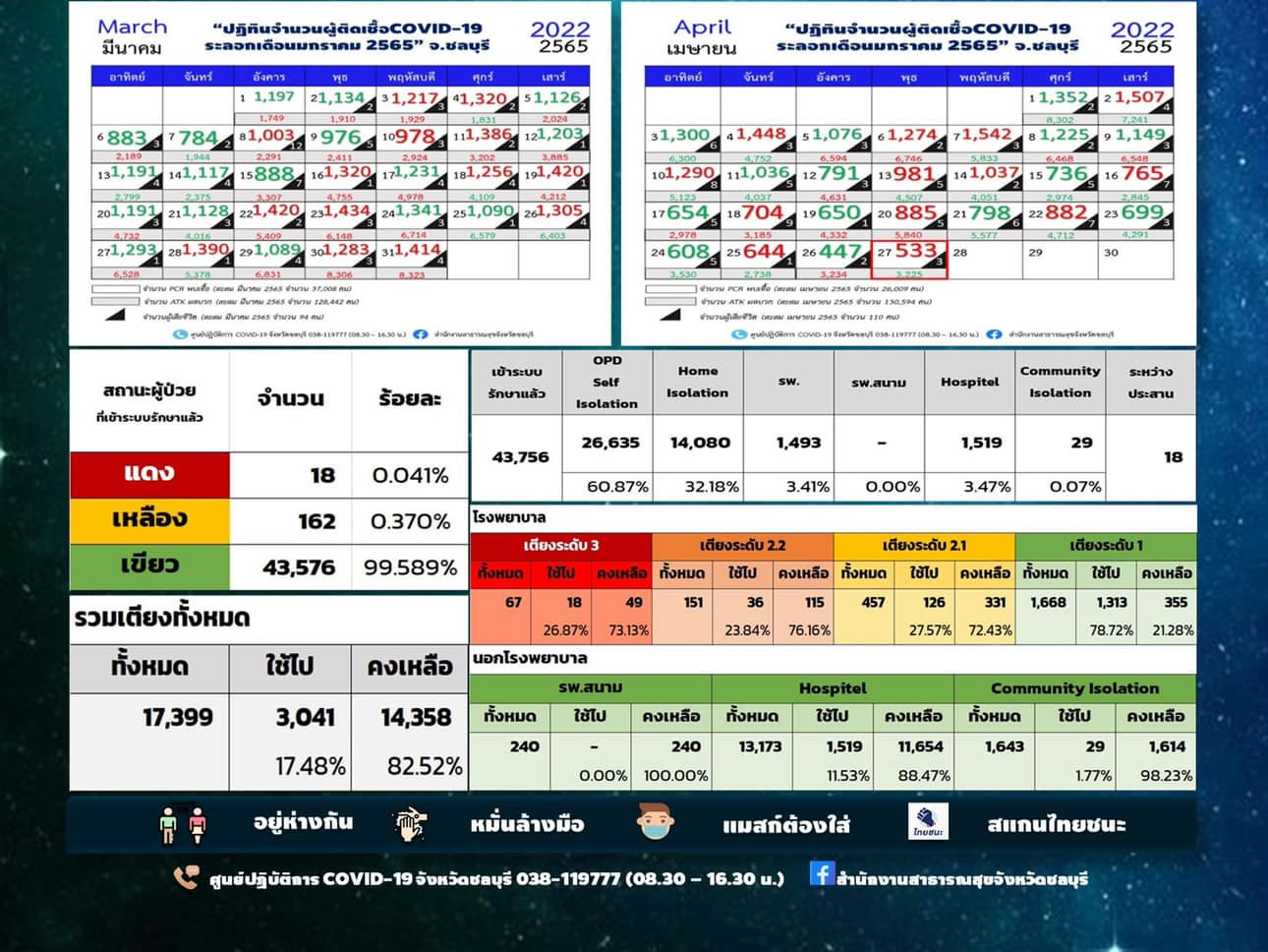 タイ東部チョンブリ県は2022年4月27日(水)早朝、新型コロナウイルスの最新の感染状況を発表しました。