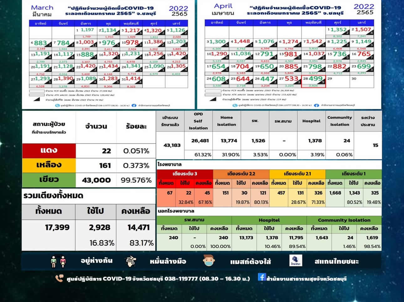 タイ東部チョンブリ県は2022年4月28日(木)早朝、新型コロナウイルスの最新の感染状況を発表しました。