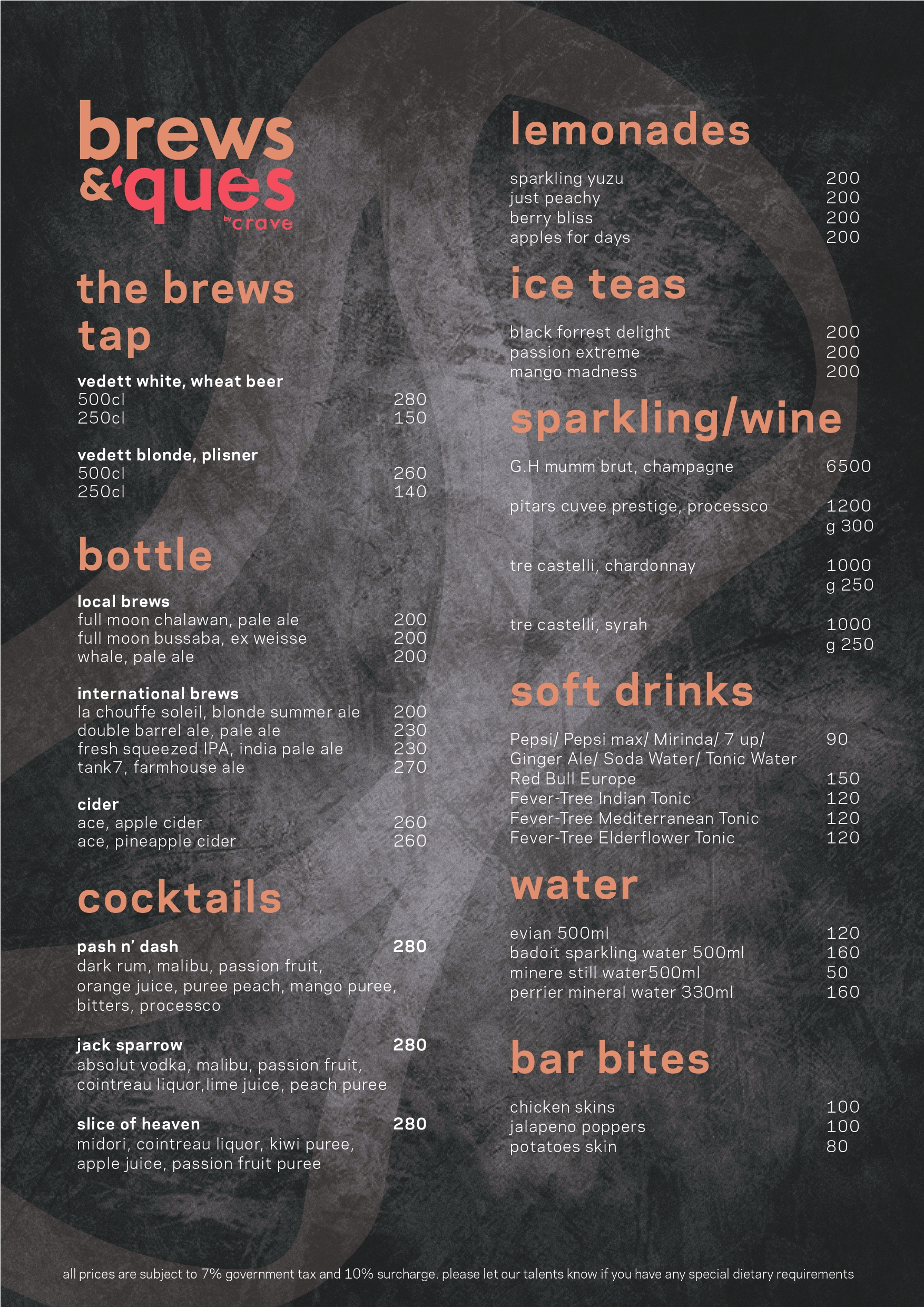 なお、期間限定でゲストは「brews & ‘ques by Crave」 での特別な再オープンを記念してオファーを楽しむことができます。今なら、食べ物と飲み物が30%オフとなています。