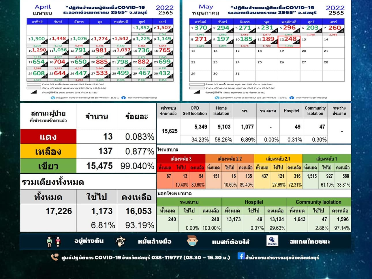タイ東部チョンブリ県は2022年5月12日(木)早朝、新型コロナウイルスの最新の感染状況を発表しました。