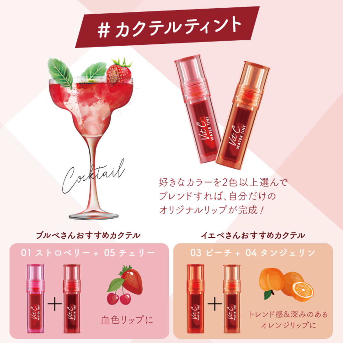 「Vit C ウォーターティント」は好きなカラーを2色混ぜ合わせて、自分好みのカラーが作れるのもポイント。