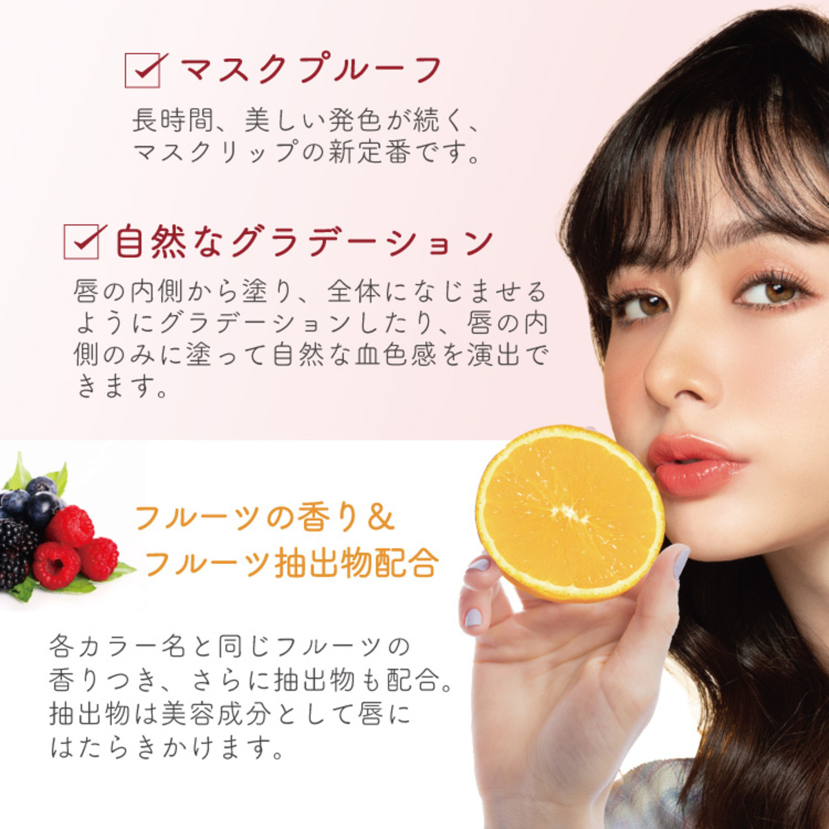 ◆マスクに色がつきにくく、長時間美しい発色が続く、マスクプルーフ仕様