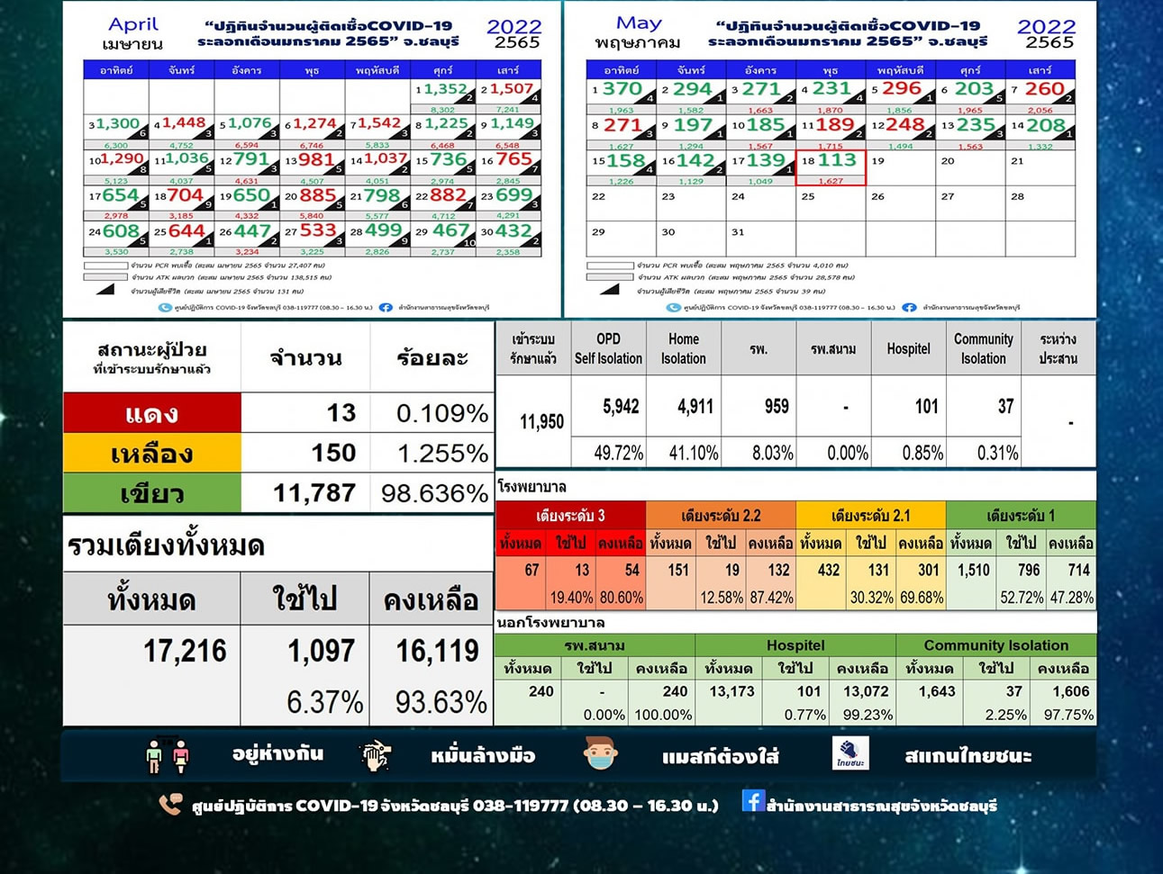 タイ東部チョンブリ県は2022年5月18日(水)早朝、新型コロナウイルスの最新の感染状況を発表しました。