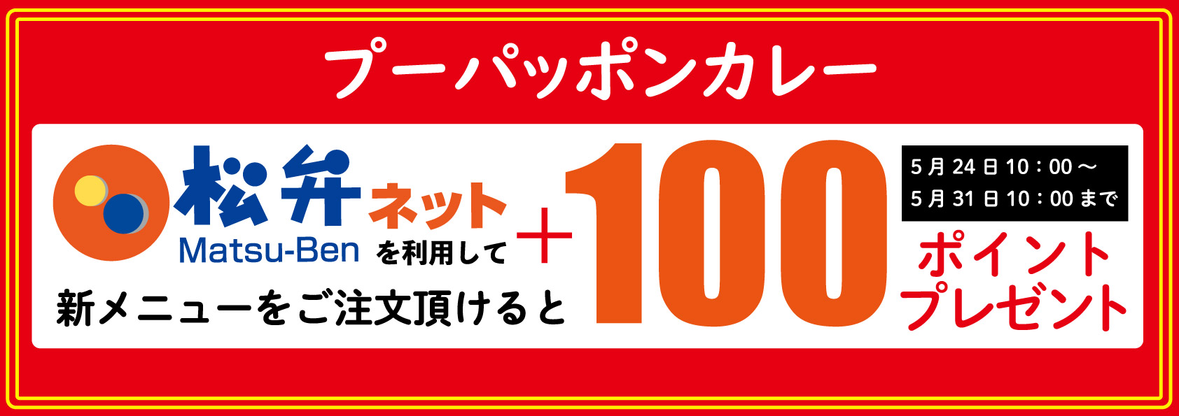 発売を記念して「プーパッポンカレー」を注文すると、2022年5月31日(火)まで、ライス大盛を無料サービス。