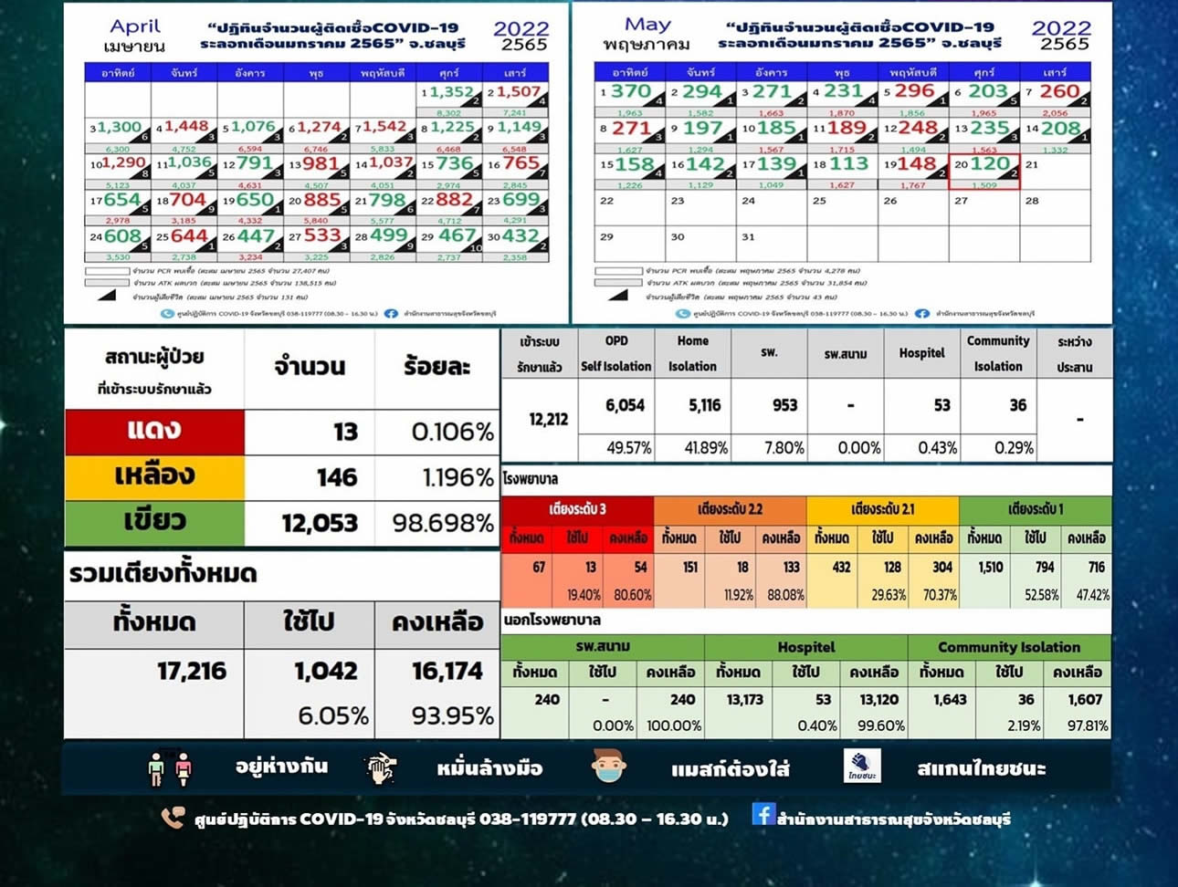 タイ東部チョンブリ県は2022年5月20日(金)早朝、新型コロナウイルスの最新の感染状況を発表しました。