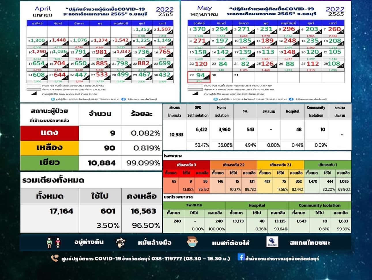 タイ東部チョンブリ県は2022年5月29日(日)早朝、新型コロナウイルスの最新の感染状況を発表しました。