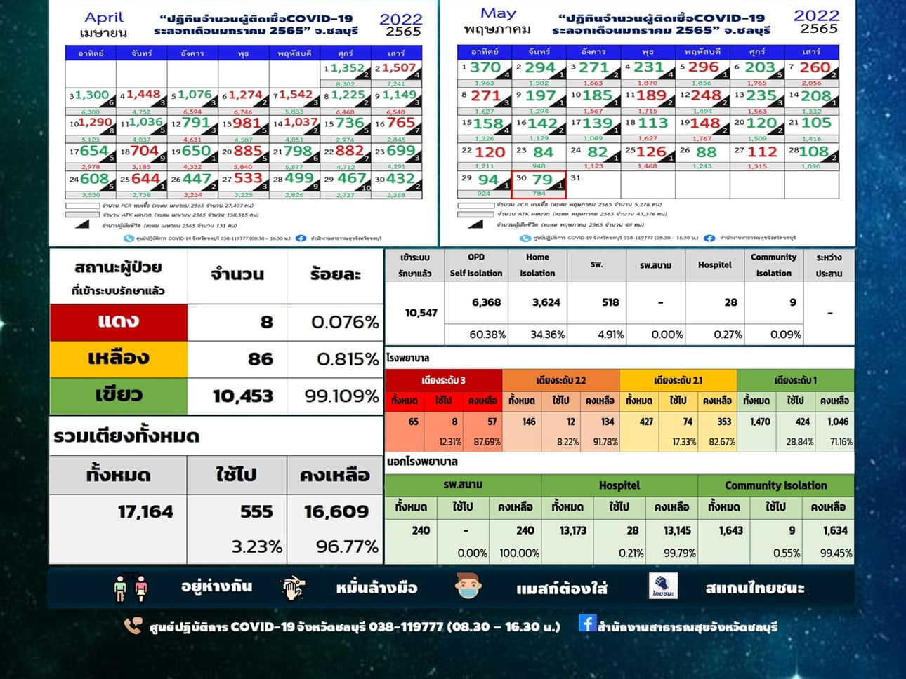 タイ東部チョンブリ県は2022年5月30日(月)早朝、新型コロナウイルスの最新の感染状況を発表しました。