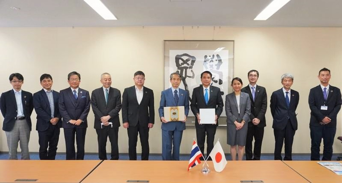 在福岡タイ王国総領事館のソールット・スックターウォン総領事、ソムチャイ・アンサナンスク領事およびポーンパン・プーピアンジャイ領事が2022年5月27日、岡山大学を訪問し、槇野博史学長を表敬訪問しました。岡山大学からは槇野学長のほか、那須保友理事(研究担当)・副学長、鈴木孝義副学長(国際担当)、三野元靖副理事(研究・産学共創担当)らが出席するほか、独立行政法人中小企業基盤整備機構中国本部長や一般財団法人企業共済協会理事長らも同席しました。