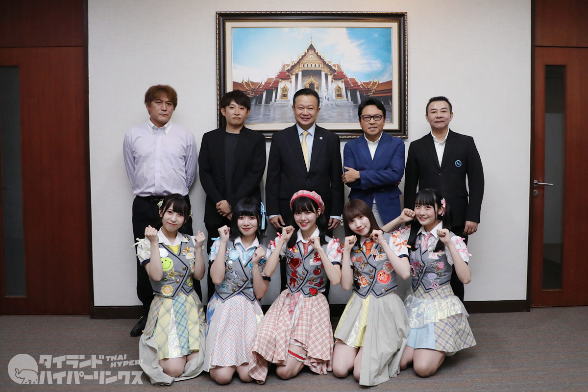 タイをテーマにした新曲「微笑ノ国」を引っ提げて、ワンマンライブのためにバンコクにやってきた人気アイドルグループFES☆TIVEが2022年6月24日(金)、ペッブリー通りにあるタイ国政府観光庁(TAT)本庁を訪問。その目的はタイ国政府観光庁ユタサック・スパソーン総裁との面会でした。