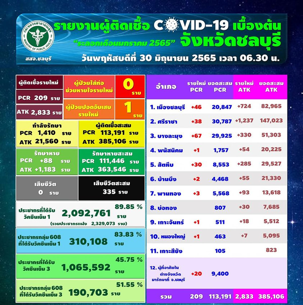 タイ東部チョンブリ県は2022年6月30日(木)、新型コロナウイルスの最新の感染状況を発表しました。