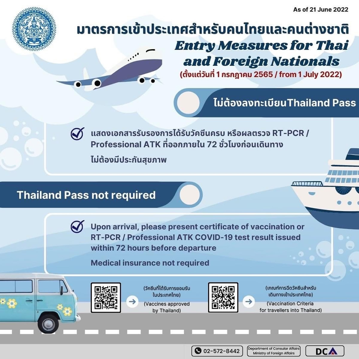 7月1日から「タイランドパス」不要、保険加入も不要、ワクチン未接種でも陰性証明で自由にタイ旅行可能