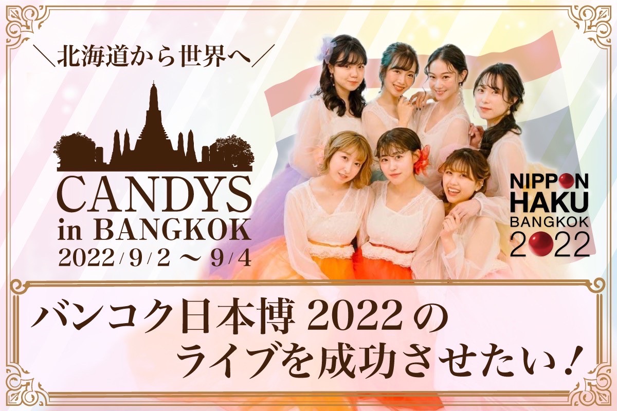挫折を経験したメンバーで結成された大人のリベンジアイドル「CANDYS」は、完全セルフプロデュースで駆け出しのアイドルグループであるにも関わらず、9月にタイで行われる『バンコク日本博2022』への出演が決定。この初の海外イベントを成功させるため、北海道からタイへの渡航費をクラウドファンディングで募集します。募集期間は2022年7月7日(木)から8月26日(金)で、目標金額は200万円を目指します。