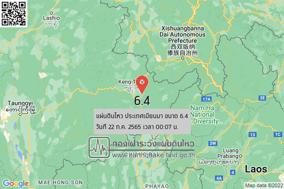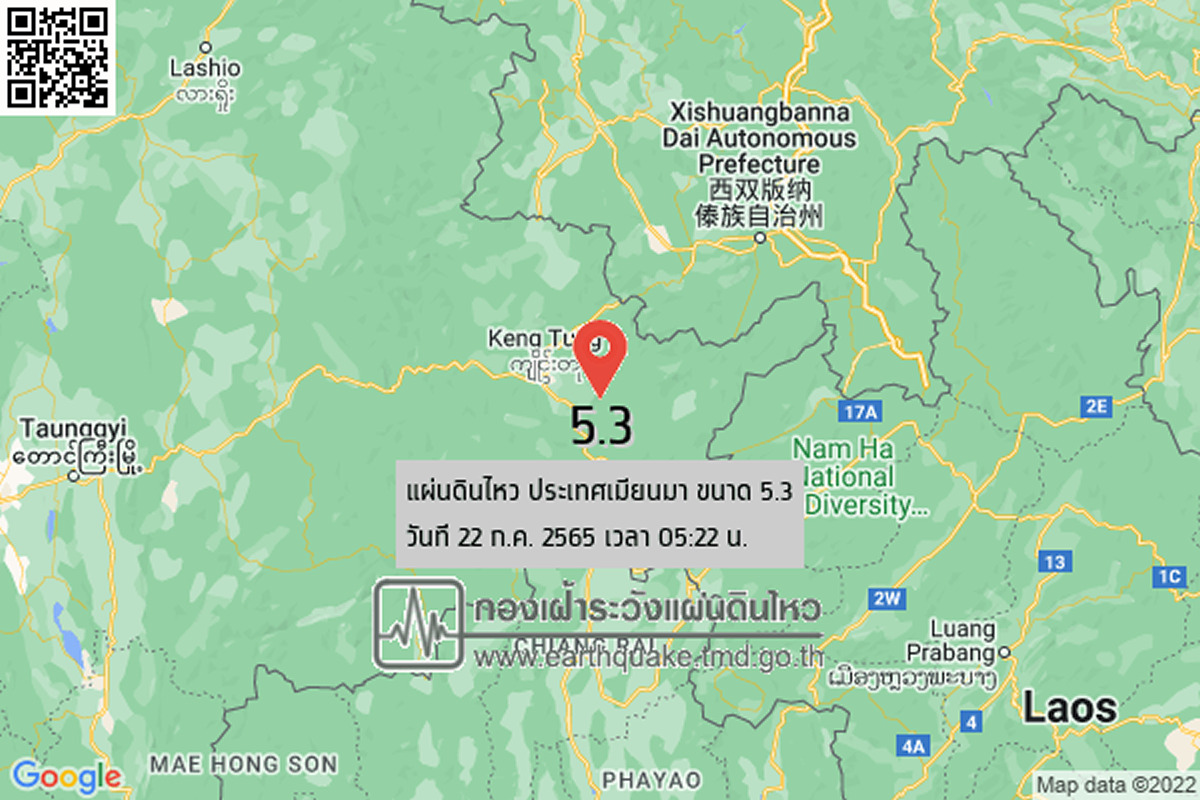 タイ北部チェンライ県と接するミャンマーのシャン州では、2022年7月21日より何度となく地震が発生しており、7月22日朝までに3回の地震(M5.1 M6.4 M5.3)でタイでの揺れが確認されています。