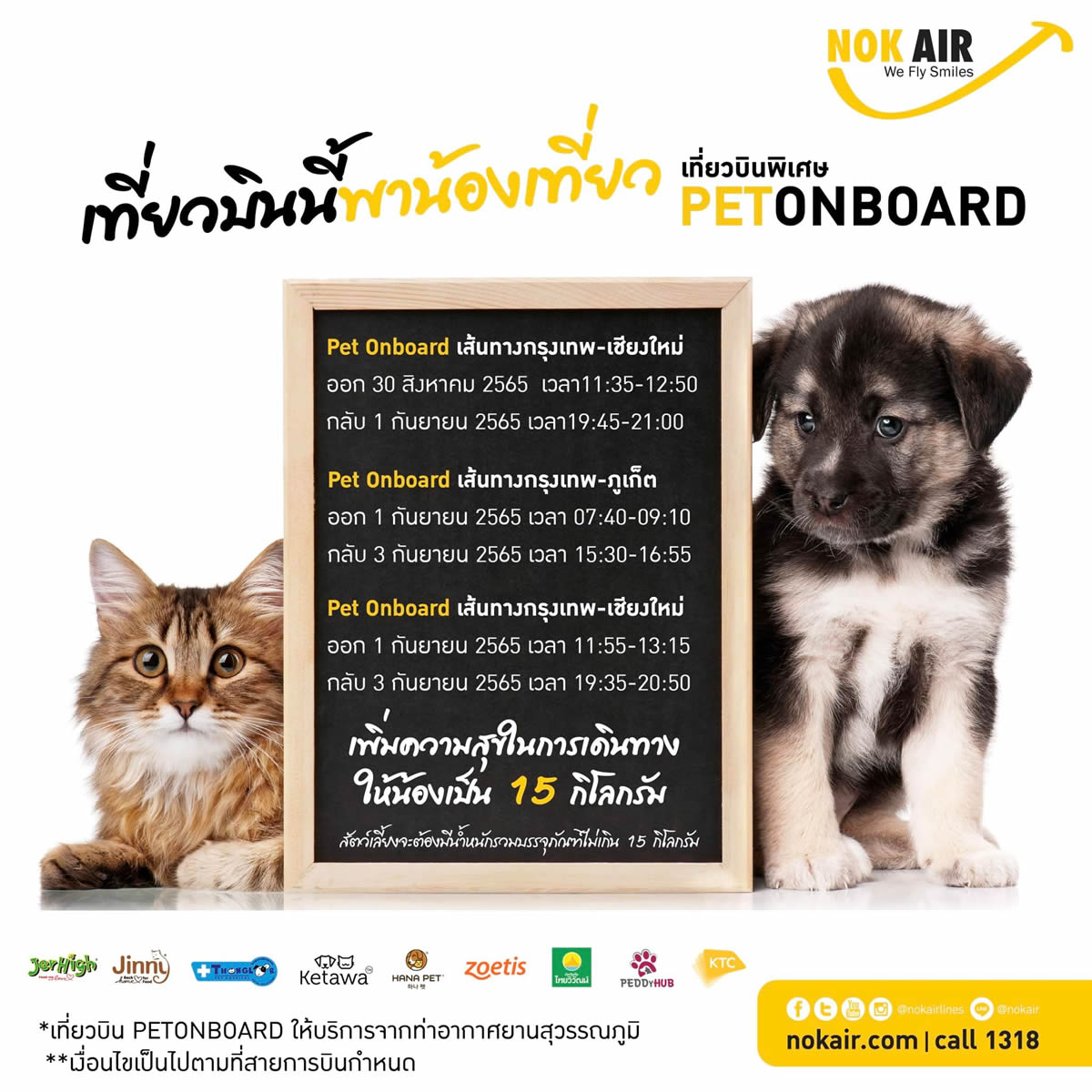 タイの格安航空会社ノックエア(NOK AIR)は2022年8月から、バンコク、プーケット、チェンマイ間でペットとの空の旅を可能にする新サービス「Pet On Board」を開始します。