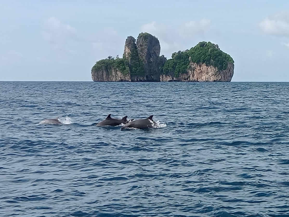 映画「ザ・ビーチ」の舞台になって人気の観光スポットになったタイ南部クラビ県ピピ・レイ島のマヤベイに、バンドウイルカが群れで姿を現しました。ムー・コ・ピピ国立公園のFacebookページに動画と写真が掲載されました。