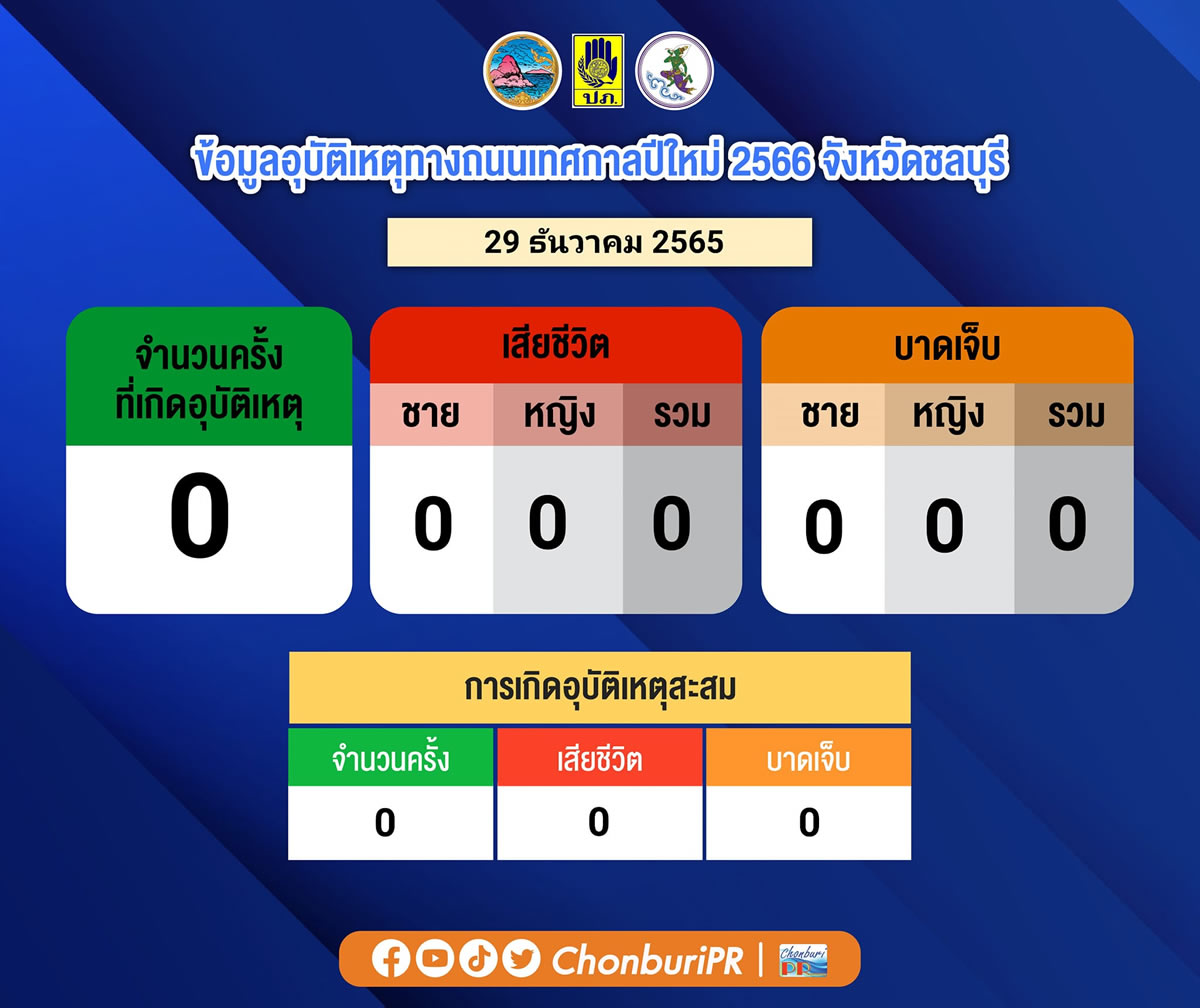 そんな中で、1万人の日本人が暮らすと言われるシラチャや世界的ビーチリゾートのパタヤなどを有するチョンブリ県の「危険な7日間」は、初日の12月29日と2日目の12月30日は共に、事故件数0件、負傷者0人、死亡者0人となりました。