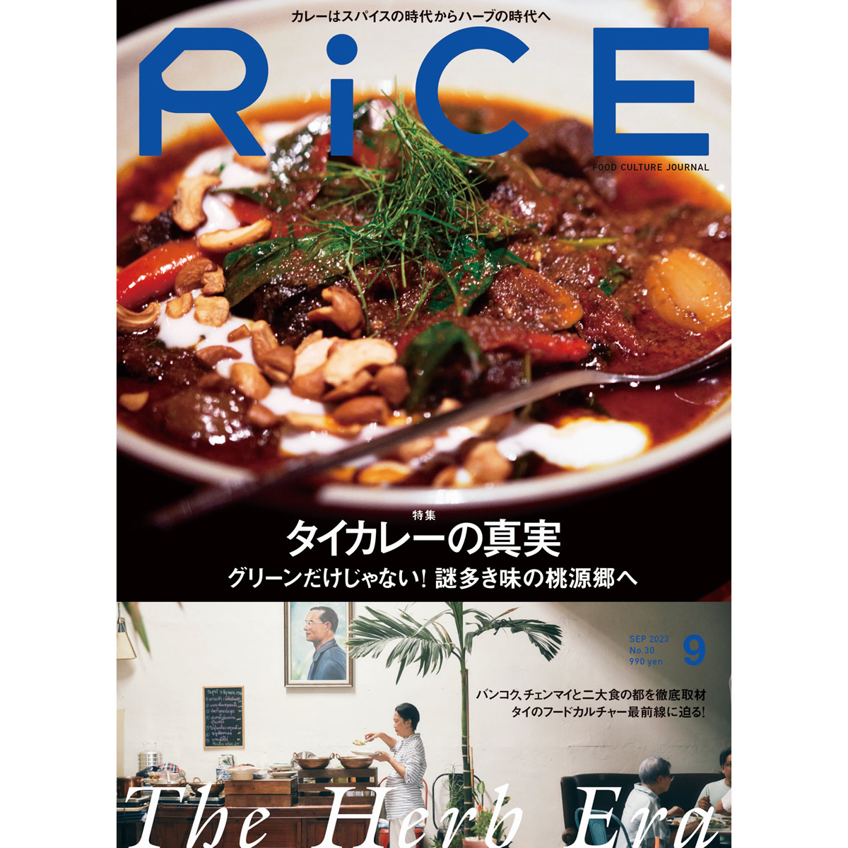 毎号一つの料理や飲み物をワンテーマで切り取るフードカルチャー誌「RiCE(ライス)」の2023年9月号の特集テーマは『タイカレーの真実』。グリーンカレーをはじめとする「タイカレーを軸としたタイ料理の過去・現在・未来に迫る、また付随する食文化の今に迫る」という、まるまる一冊タイ料理特集です。発売は2023年8月4日(金)。定価は990円(税込)。