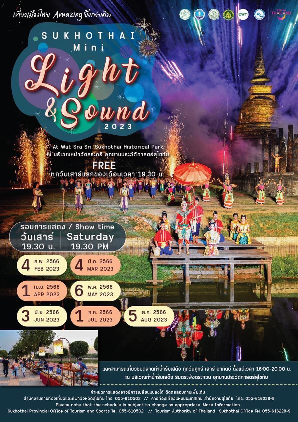 タイ国政府観光局(TAT)は、「スコータイ ミニ ライト&サウンド 2023(Sukhothai Mini Light & Sound 2023)」の公演が、2月から8月までの毎月第1土曜日に、スコータイ歴史公園内のワット・サーシーで開催されると発表しました。