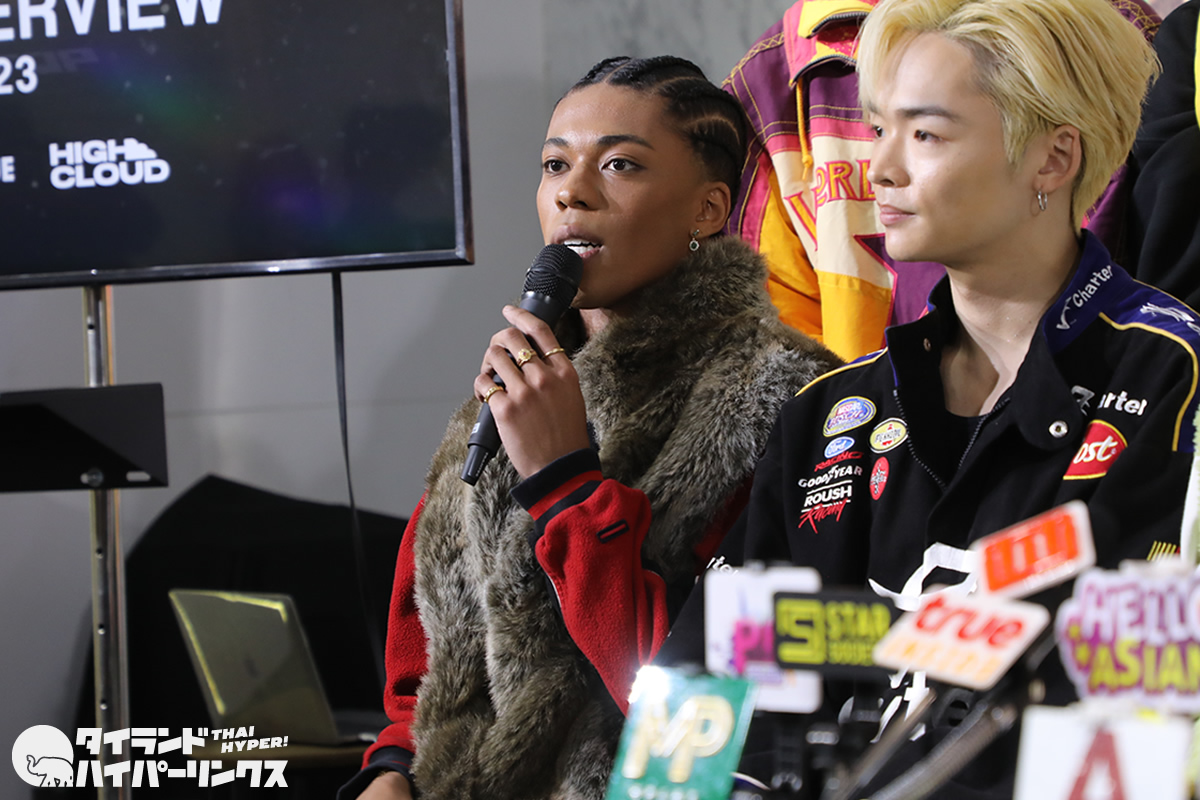 JIMMY「お二人とも僕たちにすごく優しく寄り添ってくださいました。F.HEROさんはカルチャーに詳しい方で、タイのHIP HOPや生活様式も知っていますし、勿論僕たち日本のカルチャーもすごく大切にしてくださって、『タイだったらこうした方が良いよ。』とか『もっと伝えるためにはこうすれば良いよ。』っていうのを伝えてくださいました。NINOさんは自分たちが夢に向かっていく思いを、歌詞やビートの中にちりばめて下さったんです。このお二人と『To The Top』という楽曲を作成出来て嬉しく思います。」