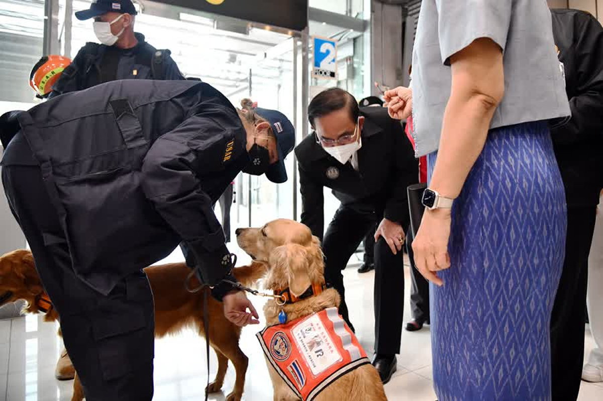 式典では、首相がタイのトルコ派遣団関係者に謝辞を述べるとともに、急遽編成されたにもかかわらず、犠牲を払って人助けをした救助隊を英雄として称えました。そして、探知犬SierraとSaharaを含むチームメンバー全員に表彰メダルが授与されました。