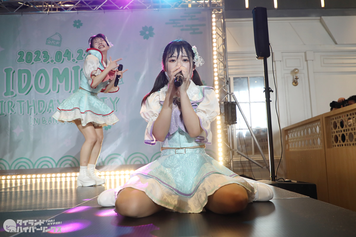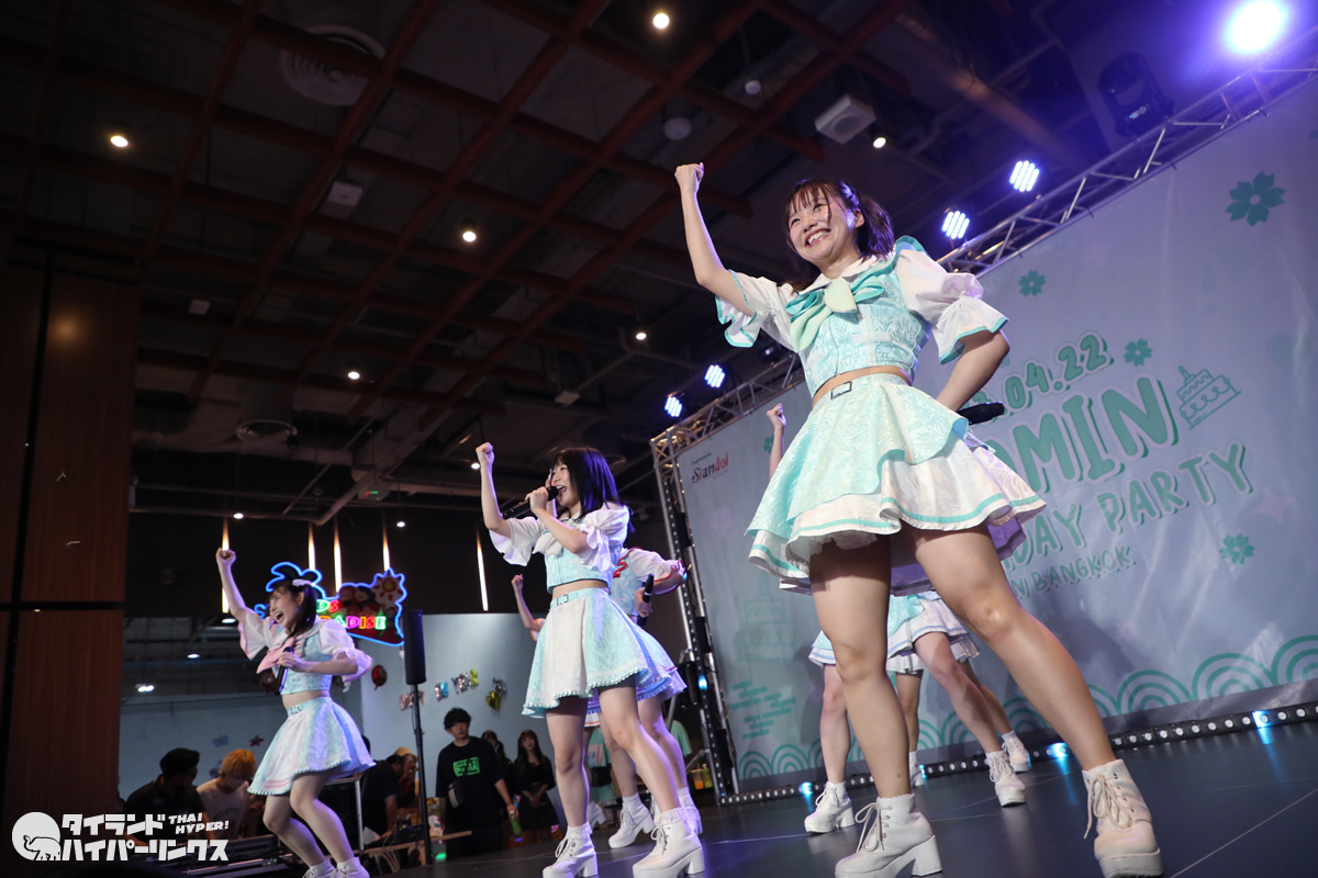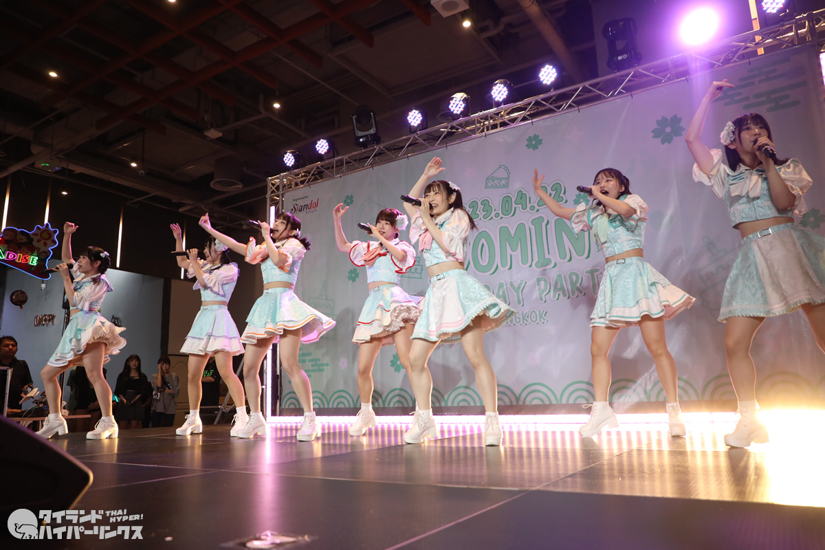 『idomin Birthday Party in Bangkok』のライブ後に、I MY ME MINEから重大発表。それは、タイのアイドルグループSumomoのナムファーが日本にアイドル留学し、I MY ME MINEと1ヶ月間行動を共にするというものでした。なお、この日はSumomoが、I MY ME MINEの楽曲である「恋はプリズム」タイ語バージョンを披露しています。