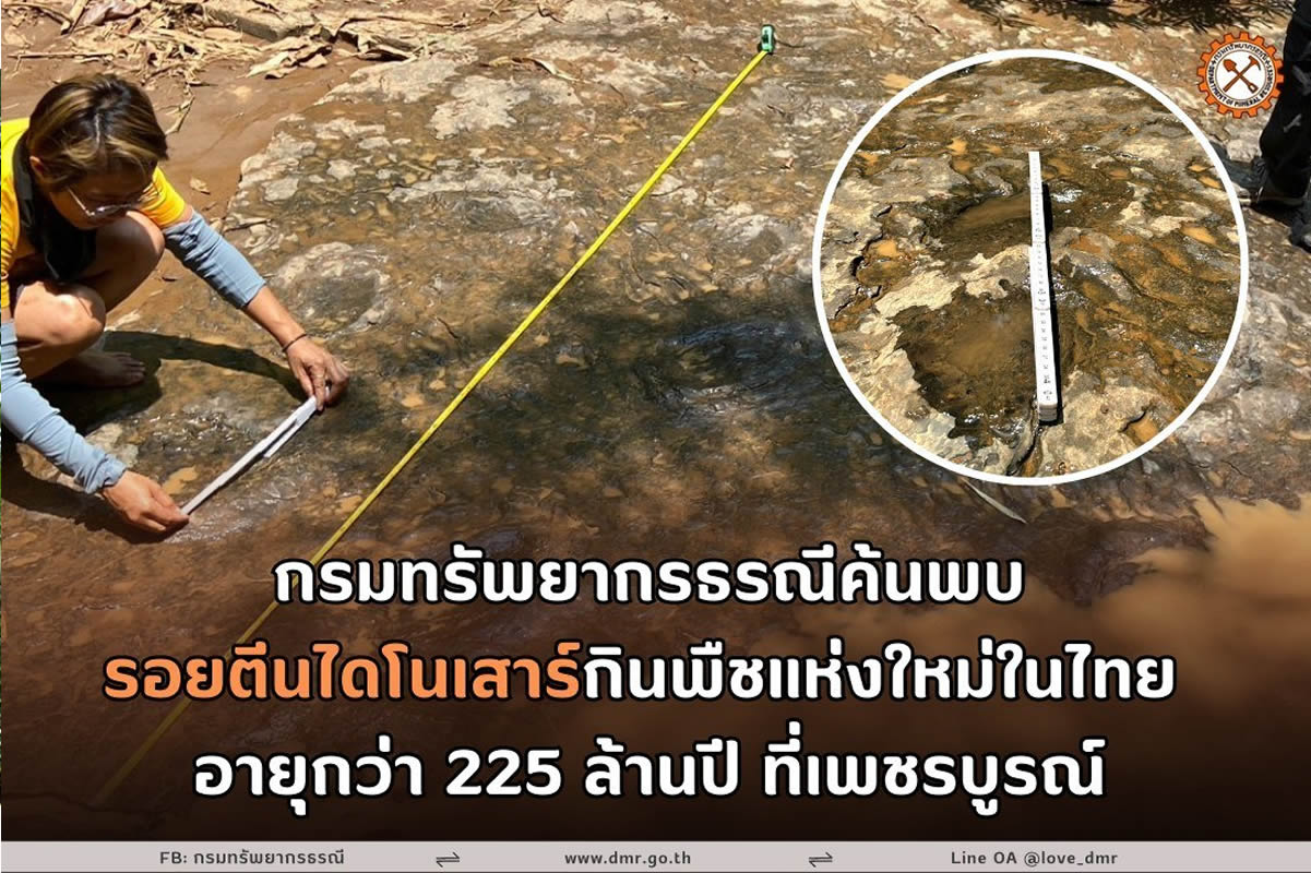 タイ工業省鉱物資源局(กรมทรัพยากรธรณี、DEPARTMENT OF MINERAL RESOURCES:DMR)は2023年5月7日、ペッチャブーン県ナムナーオ区で、恐竜の足跡を発見したと発表しました。専門家は、この恐竜の足跡は、2億2500万年前の三畳紀後期のものであると推定しています。