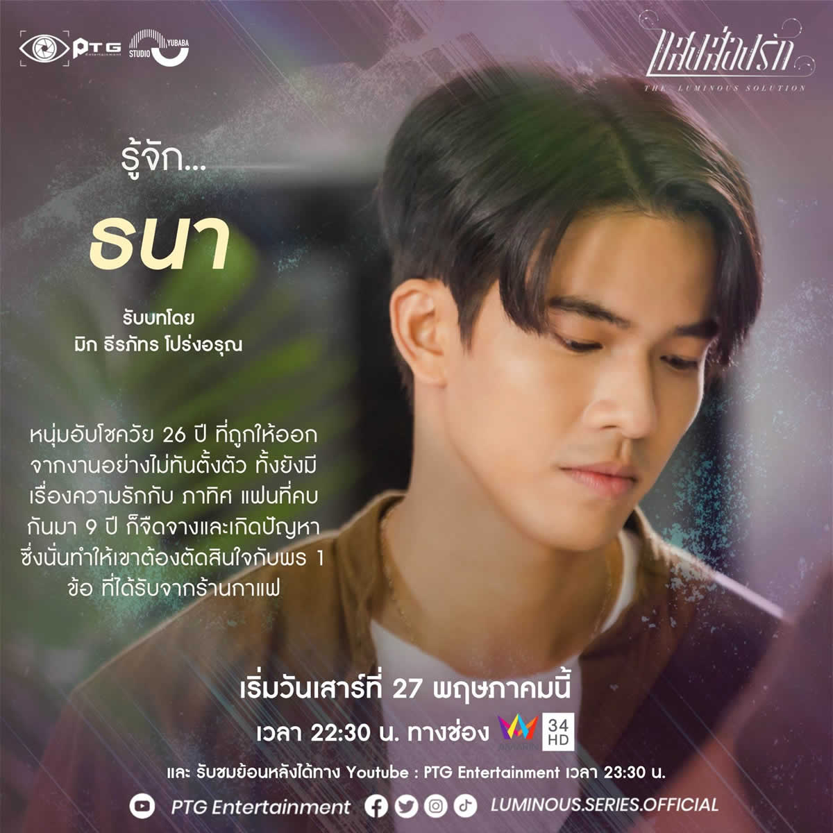 PTGエンターテインメントが手掛け、2023年5月27日(土)からAMARIN TV HDチャンネル34で放送開始のタイBLドラマ「The Luminous Solution – 愛の光」。予告編公開の勢いもあり話題を呼び「刺激的で見る価値あり!」との声も多数。 ファンタジーをコンセプトにしたBLドラマは斬新です!