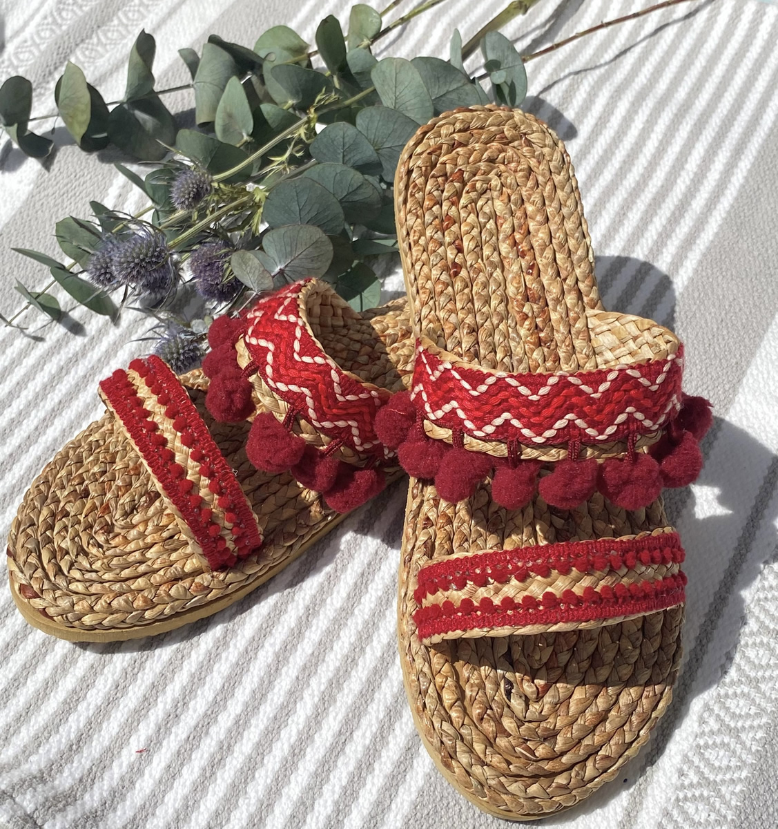 天然素材のウォーターヒヤシンスは素足にさらりと気持ちよく、これからの夏にぴったりです。また、とても丈夫でササクレもできにくく、末永くご愛用いただけます。