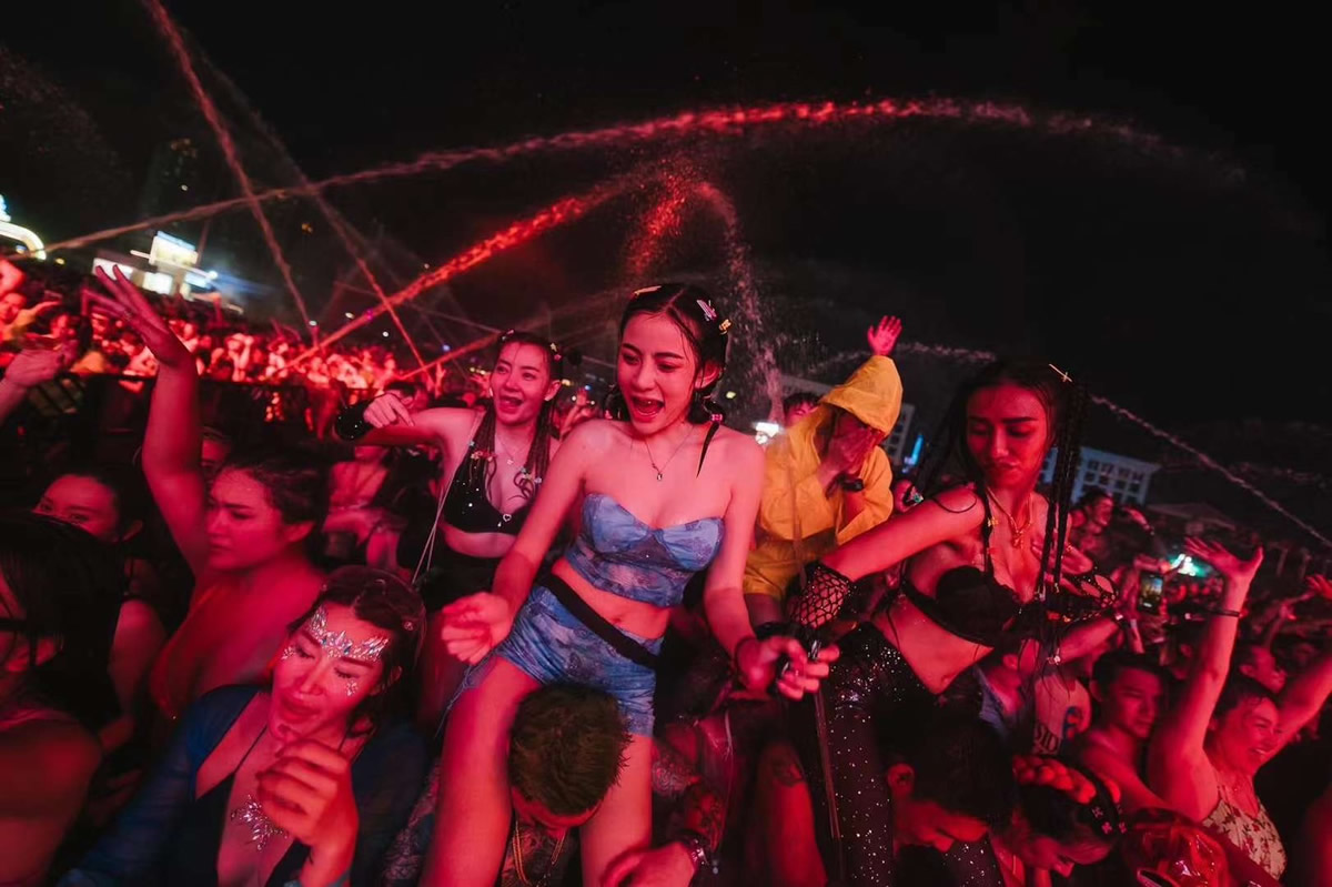 ステージ付近で出演者からの放水パフォーマンスで盛り上がった後は、タイの本場の「ソンクラーン」のように、観客同士が水鉄砲で水を掛け合って遊ぶのが本公演の楽しみ方。真夏のビーチで、初めて出会った人とも仲良くなろう!(水かけNGエリアではご遠慮ください)
