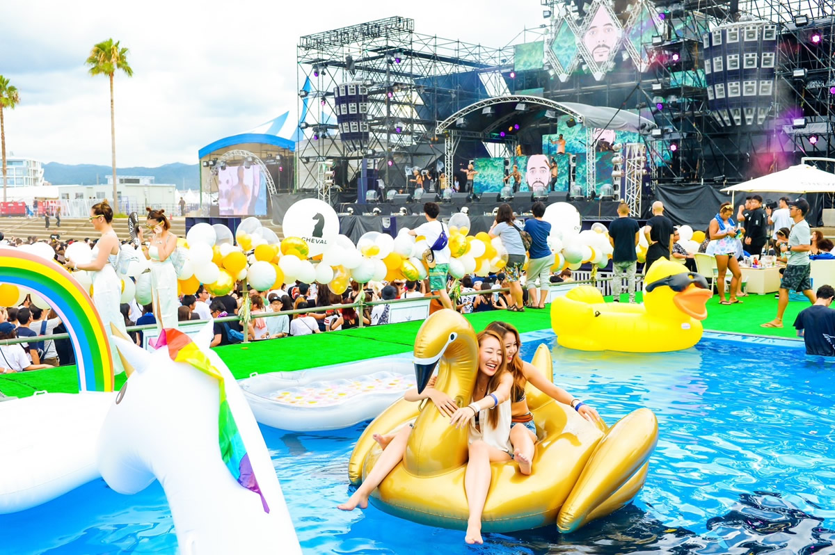 MUSIC CIRCUS’23は今年も楽しいコンテンツが目白押し。人気屋台グルメが集結するフードエリア、バナナボートなどのマリンアクティビティ、プールエリアも!最高の1日を締め括るのは、フィナーレの花火!遊び尽くせない程充実のラインアップに、ますます夏が待ち遠しくなる!