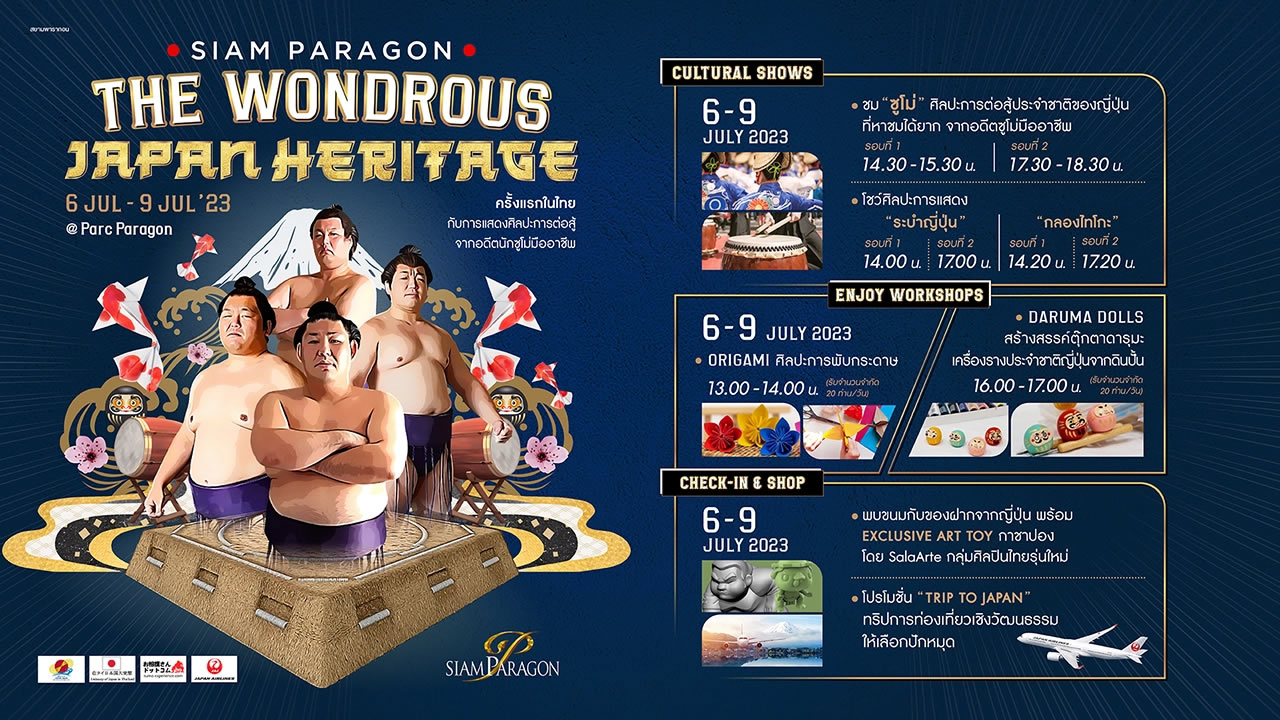 「サイアムパラゴン ザ ワンダラス ジャパン ヘリテージ」では相撲をフィーチャーし、大相撲の元力士らのショーが披露されます。また様々な日本の文化や商品も紹介されるとのことです。